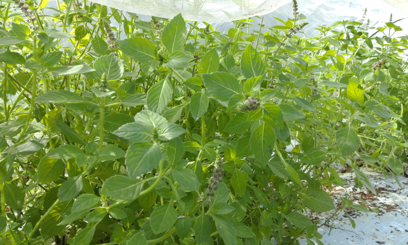 主にゼラニウムやホーリーバジルなどを生産して、各商品の原料に加工して使用しています。